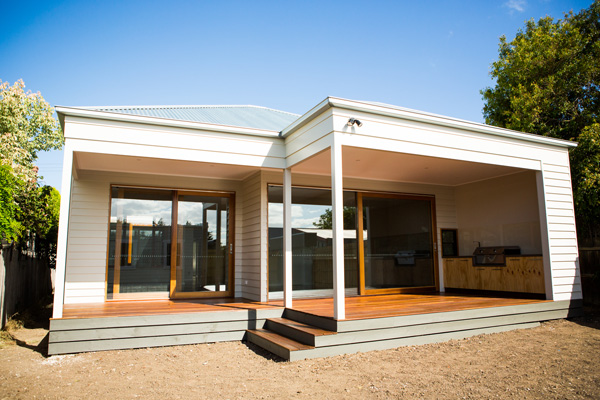 Meakin Street east Geelong, is a renovation and extension to an old california bungalow. Originally built in the 1930's, it was important to keep the original facade of theh property as true to the way it was first built however adding moremodern touches inside. The home was extended to include a large, open plan kitchen, living and dining room. additional bedroom with guest ensite, new bathroom and toilet. The remainder of the original property was updated to reflect the new design of the home. Outside, a large alfresco area was added including an outdoor kitchen. Single car garage at the rear was also renovated and 2 new roller doors added.